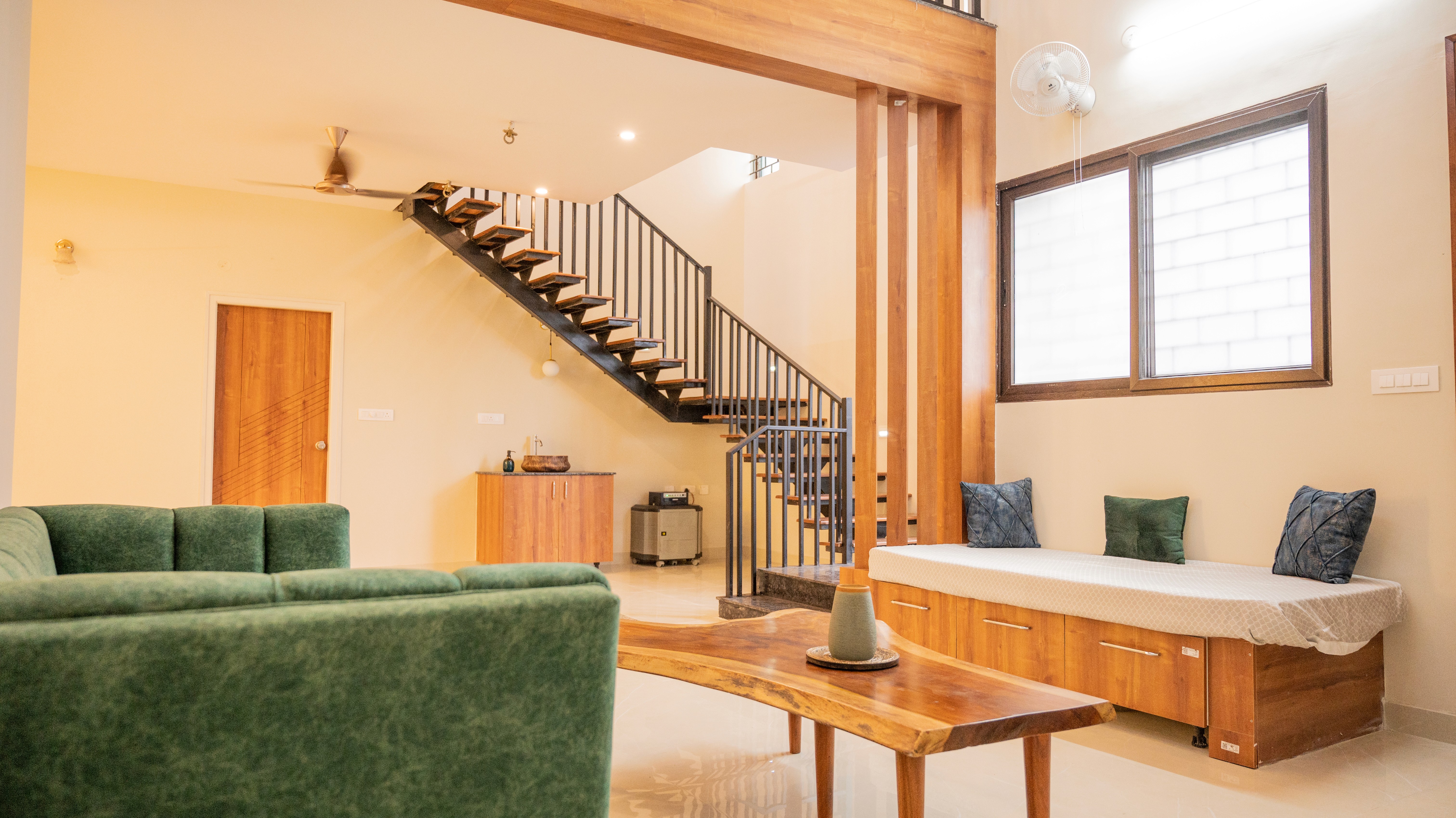 Welcome to Mr. Nikhil Prabhu’s Dream Home! This beautiful 4BHK home located at Kapila Layout, Mysore is crafted around the beauty of Elegance. An Open, Bright & Flowing floor plan blended with a touch of sophistication, allows the home to exude spaciousness. For a client who loves Music, we created a home which comforts the Soul just like how his Music does. A Unique Elevation which stands out in the Locality is one of the Wow factors of this project. The subtle shades used to create a soothing ambiance after a long day adds up to call it a dream home. The Designer Tiles pattern beautifies the entire space with a luxurious outlook. Our team of architects & engineers worked round the clock to ensure that we meet all the aspirations & needs of the family, in the best way possible, without any compromise in quality.